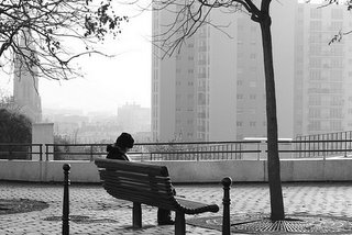 Promenade dans la ville brumeuse. Ombre, lumière et solitude.