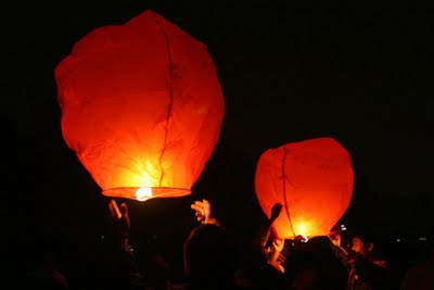 Baoding possède un long passé militaire qu'elle doit à son rôle de défense de la capitale chinoise. La ville a d'ailleurs pris véritablement son essor (et son nom) que sous la dynastie Yuan qui fit de Pékin sa capitale. Baoding possède ainsi un immense Champ-de-Mars, a proximité des vestiges de la célèbre école militaire. C'est aujourd'hui une immense esplanade très pacifique, joliment aménagée. Une galerie marchande et un vaste supermarché occupent le sous-sol, et la place abrite les amoureux en toute saison et à toute heure. Au printemps, les papys expédient leur cerf-volant le plus haut possible dans le ciel. Ce soir d'automne j'ai été témoin d'un lâché de ballons féerique. Lanternes rouges, au propre comme au figuré, petites montgolfières s'évanouissant lentement dans les airs embrumés de l'automne.