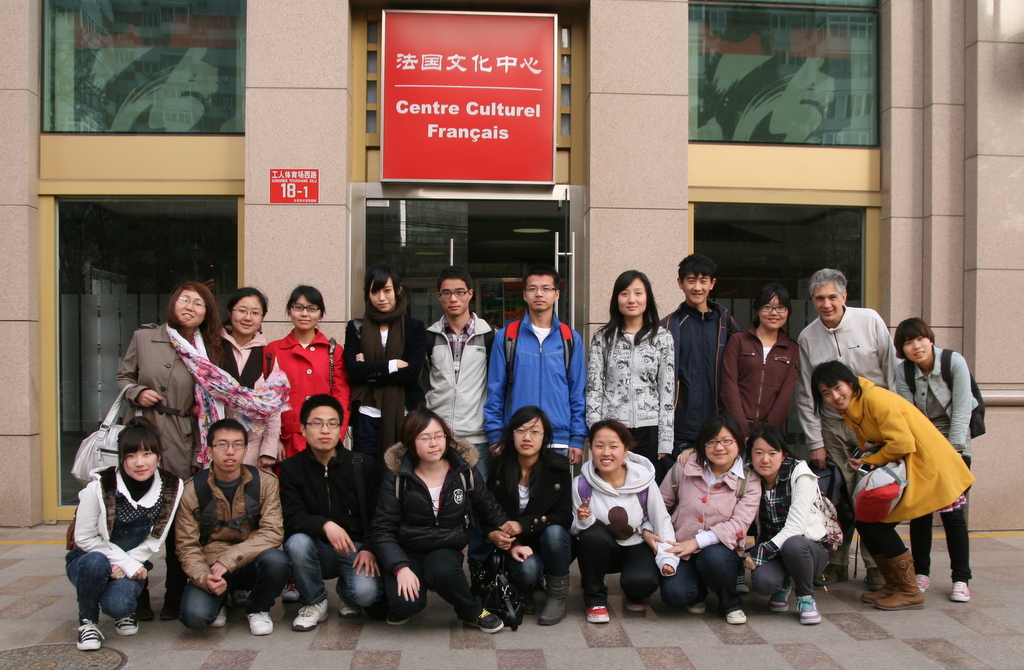 Ambiance sortie scolaire donc, la discipline en moins, nos étudiants étant majeurs depuis deux ans à défaut de paraitre tout à fait vaccinés… ils font si jeunes ! Dans le train qui nous conduit dès l’aube à Pékin, les langues si timides en classe se délient, et formulent plein de questions. On devrait sortir plus souvent avec eux. À Pékin, c’est la grande traversée pour rejoindre le CCF : bus 52, métro 1 puis ligne 2 jusqu’à Chaoyangmen.